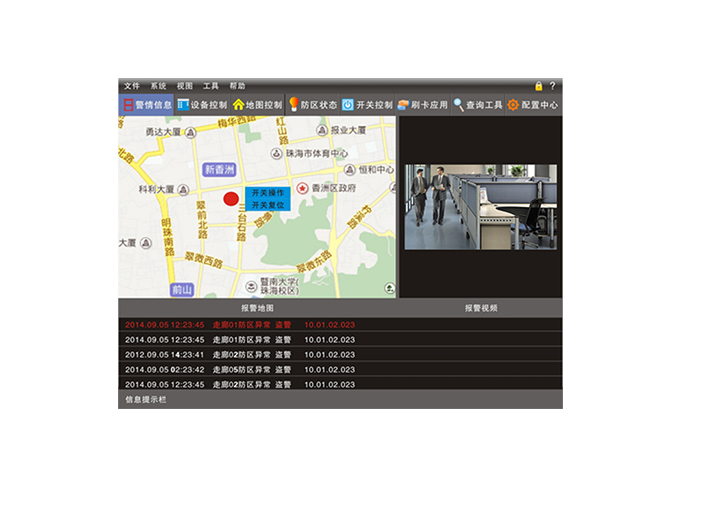 是一款集成接警、视频复核、信息发布等功能于一体的综合大型平台软件。※ 支持百度在线地图 ※ 支持视频复核,报警录像 ※ 移动客户端报警和信息发布